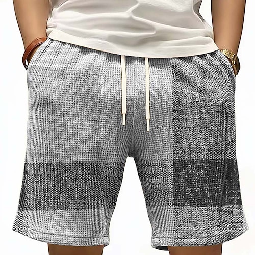 Per uomo Geometrico Blocco di colori Pantaloncini Waffle Pantaloncini da tuta Pantaloncini casual Misura del girovita medio Moda Casual Vacanza Jogging Allenamento Testurizzato Coulisse elastica in