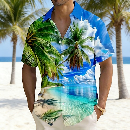 Per uomo Albero di Cocco Natura e paesaggi Piante Tropicali Camicia Camicie hawaiane Camicia Aloha Manica Corta Hawaiano Vacanza Ferie Estate Collo ripiegato Stampa 3D Una tasca anteriore Camicia