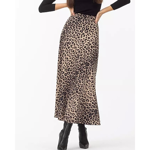 Per donna Gonna Moda Sexy Maxi Vita Alta Gonne Leopardo Arricciato Elasticizzato Quotidiano Streetwear Bianco Marrone Beige Primavera Poliestere