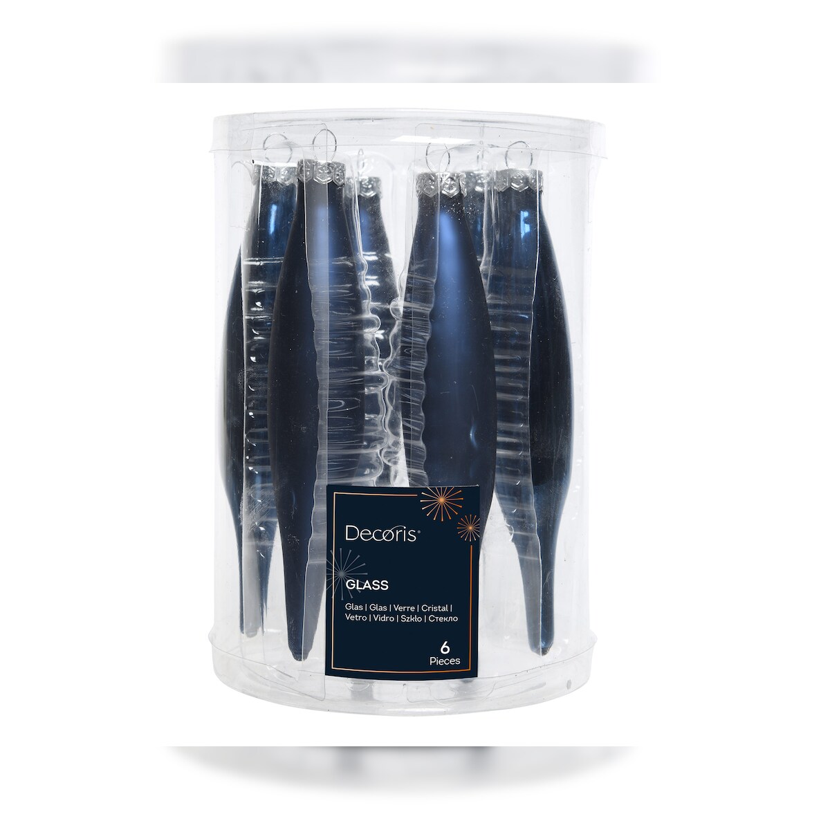 6 Eiszapfen 15cm Glas Christbaumschmuck Weihnachtskugeln Anhänger Nachtblau