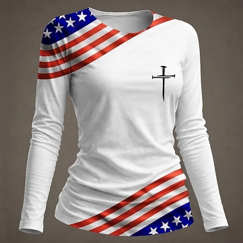 Maglietta patriottica per il Giorno dell'Indipendenza Donna 250° Anniversario Americano Maglietta Grafica Bandiera Elegante Classico Casual Manica Lunga Girocollo Collo Rotondo Stampa Quotidiana