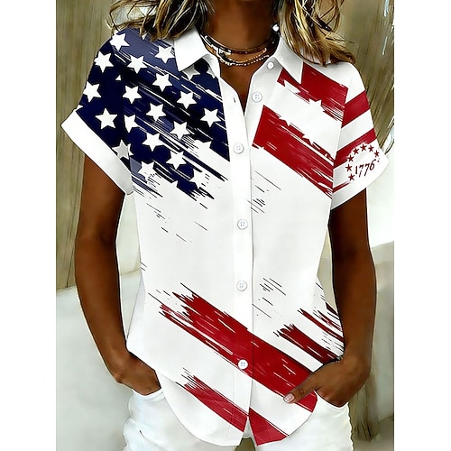 Giorno dell'Indipendenza Americana Per donna Camicia Grafico Bandiera Vintage Elegante Casual Manica Corta Colletto a Camicia Top Regolari Quotidiano Bianco Rosso Estate Primavera