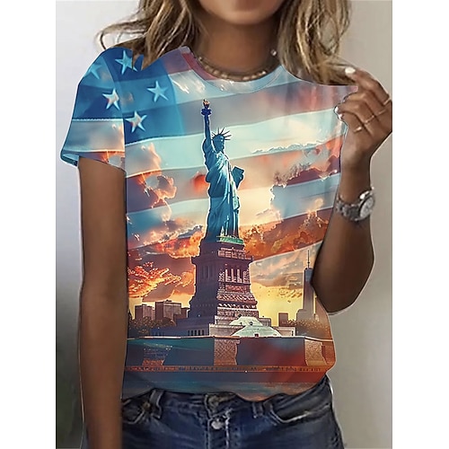 Giorno dell'Indipendenza Americana Per donna Maglietta Stampato Grafico Bandiera Elegante Classico Casual Manica Corta Girocollo Top Regolari Quotidiano Blu Nero Rosso Estate Primavera