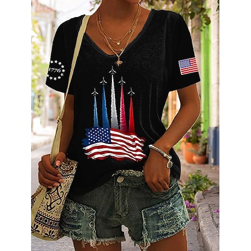 Giorno dell'Indipendenza Americana Per donna Maglietta Stampato Grafico Bandiera Vintage Elegante Classico Manica Corta Scollo a V Top lunghi Quotidiano Nero Estate Primavera