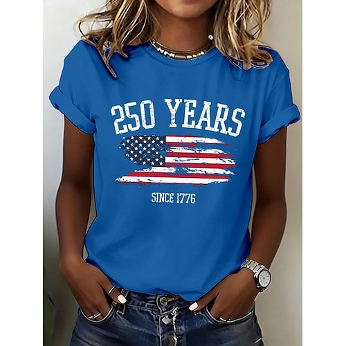 Maglietta patriottica del Giorno dell'Indipendenza Americana 250° anniversario T-Shirt da donna Grafica Bandiera Bandiera Nazionale Vintage Stile Classico Maniche corte Collo a girocollo Stampa