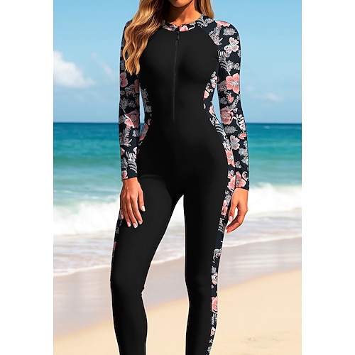 Per donna Top sottomuta Rash Guard completo per il corpo Costume da surf intero Floreale Tropicale Protezione Solare UV Coppa larga UPF50 Manica Lunga Integrale Costume da Bagno Body Con zip con