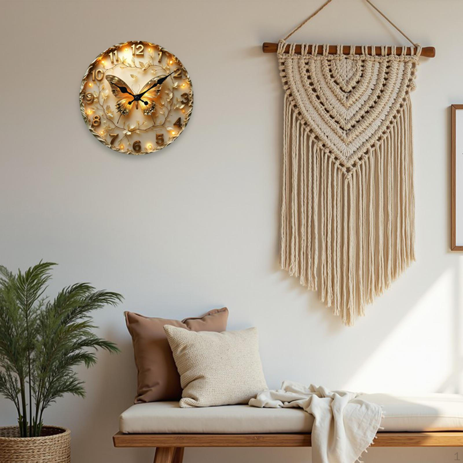 Wall Clock Artistic 2D Modern Round for Living Room Bedroom Non Ticking Analog Decorative Butterfly