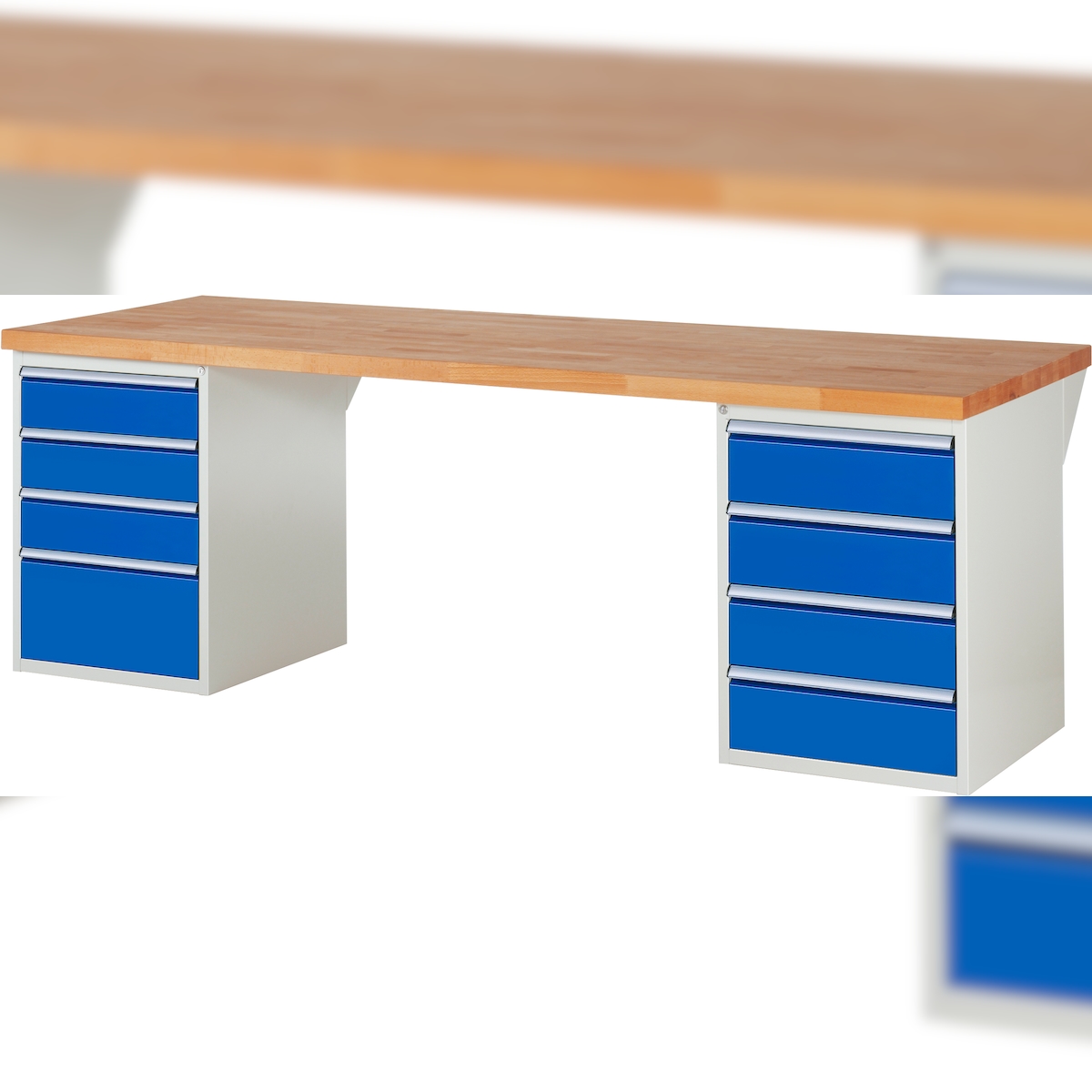 PROREGAL Werkbank Serie 7000 - Modell 7820 | HxBxT 84x250x90cm | 8x Schublade | Schubladenmaße 3x150 + 4x180 + 1x270mm