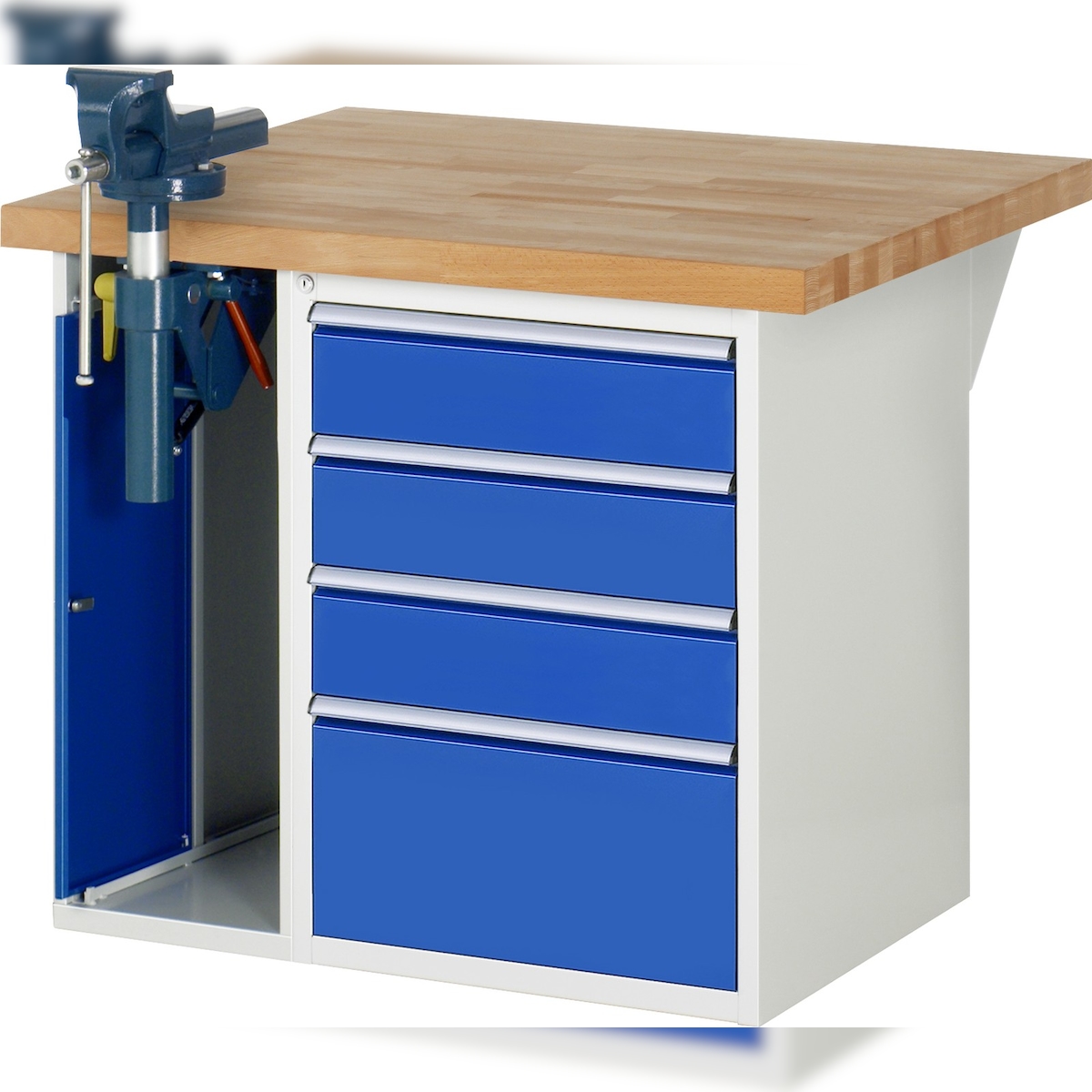 PROREGAL Werkbank Serie 7000 - Modell 7123 | HxBxT 79-114x125x90cm | 2x Schublade | Schubladenmaße 1x150 + 1x210mm