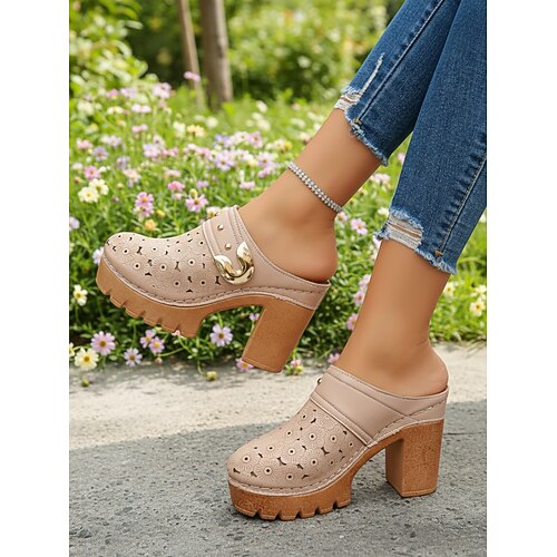 zoccoli con fibbia massiccia da donna, scarpe slip-on con plateau retrò per lavoro casual, brunch del fine settimana e moda autunnale