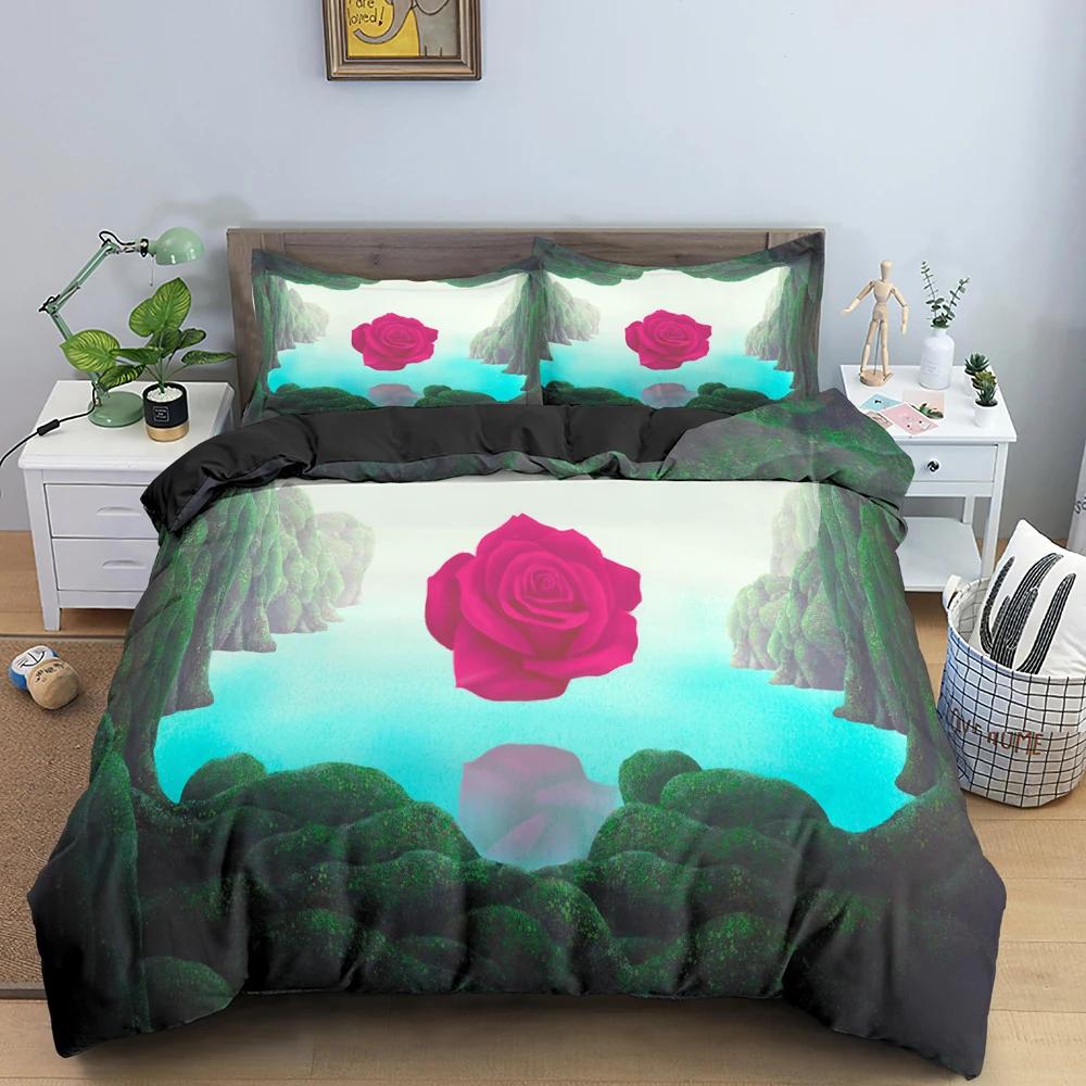 3D Floral Bedding Set Rose Surreal Scene Concept Artwork Duvet Cover King Queen Size Colorful Flowers Green Soft Comforter Cover