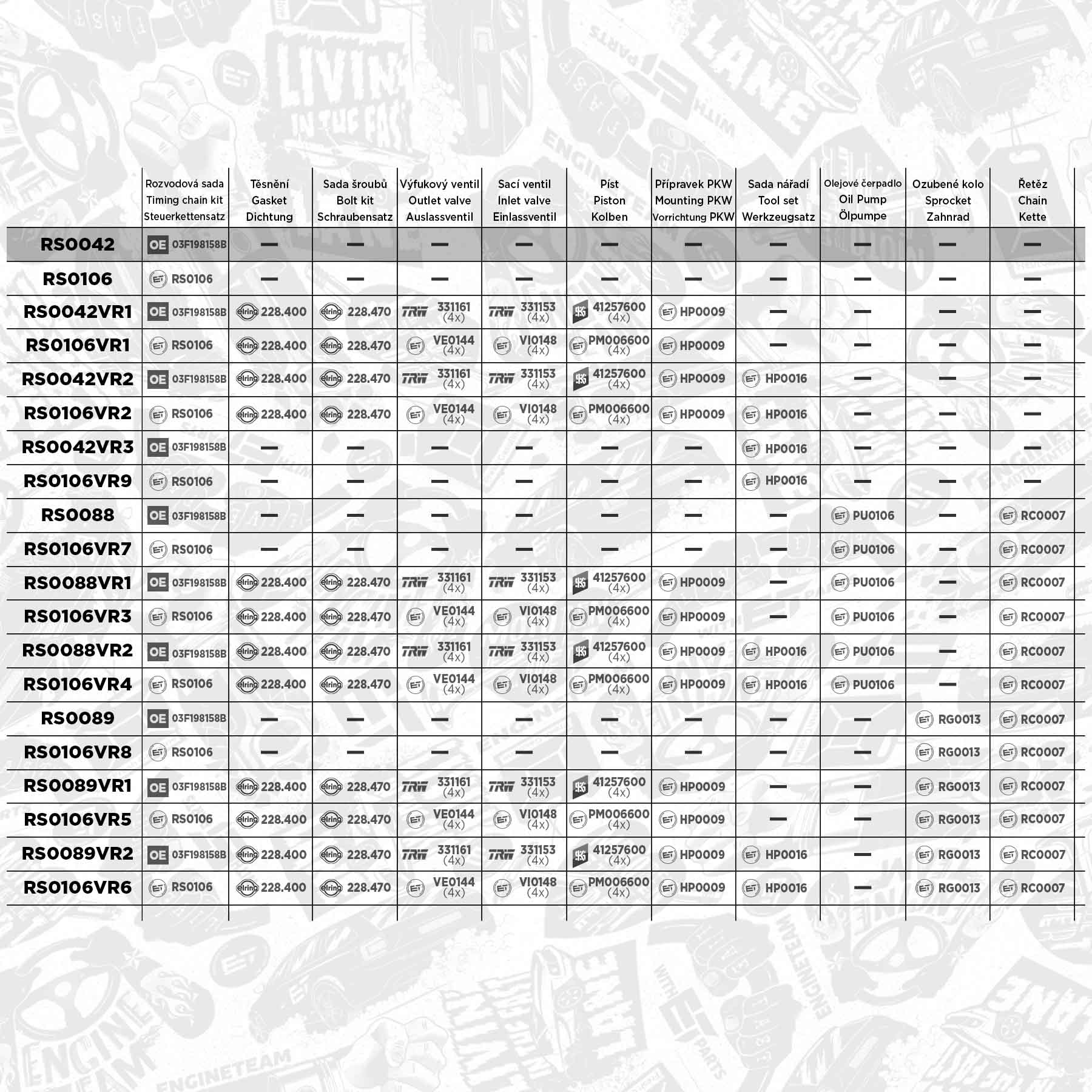 ET ENGINETEAM Steuerkettensatz VW,AUDI,SKODA RS0076 038115105C,038115130,038115230A 038115230D,38115130