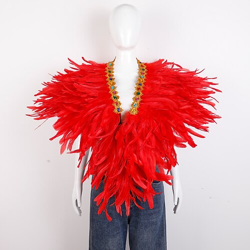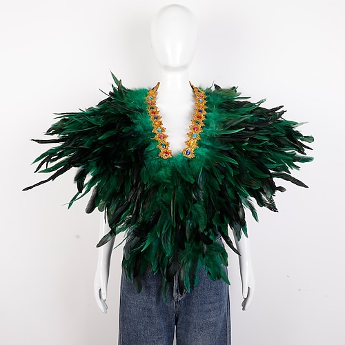 Accessori Samba del Carnevale 2026 Rio Carnevale Cappotto Sciarpa in Piume per Mardi Gras in Viola Verde Oro Poncho in Piume con Collare Gioiello per Donne Costume per Performance al Festival del