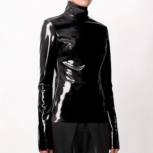 giacca Finitura lucida Per donna Effetto bagnato Effetto pelle verniciata A lupetto Tinta unica Costume per Club Feste Recital di danza Carnevale Adulti