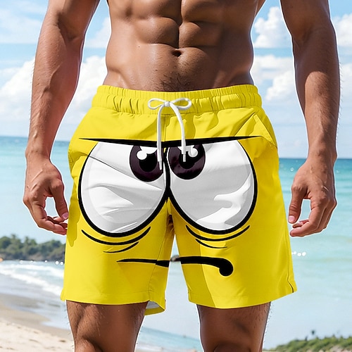 Per uomo Fantasia Cartone 3D Faccia Sorridente Grandi occhi Costumi da bagno Pantaloncini da mare Pantaloncini da Surf Misura del girovita medio Divertente All'aperto Vacanza Abbigliamento