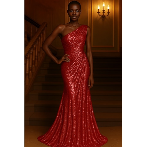 Sirena Tromba Lunghezza al pavimento Abiti da Ballo Abito da Sera Da principessa Abito formale Elegante Manica Corta Monospalla Matrimonio Formale Abito Champagne per la Madre della Sposa Con