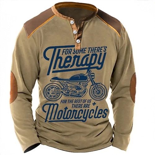 Per uomo Lettera Stampe Grafiche Camicia vintage Maglia Henley Maglietta grafica Manica Lunga Moda Essenziale Casual Quotidiano All'aperto Uscire Primavera Estate Blu Marrone Verde Grigio Henley