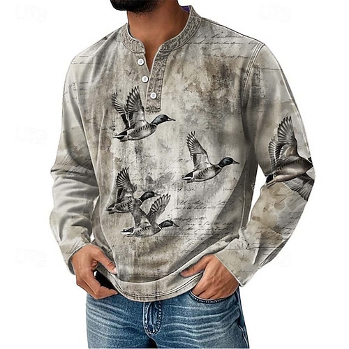 Per uomo Grafico Uccello Maglia Henley Maglietta Manica Lunga Moda Quotidiano Retrò Vintage Casuale Ferie Uscire Primavera Autunno Blu chiaro Viola Cachi Grigio Henley Maglietta Henley