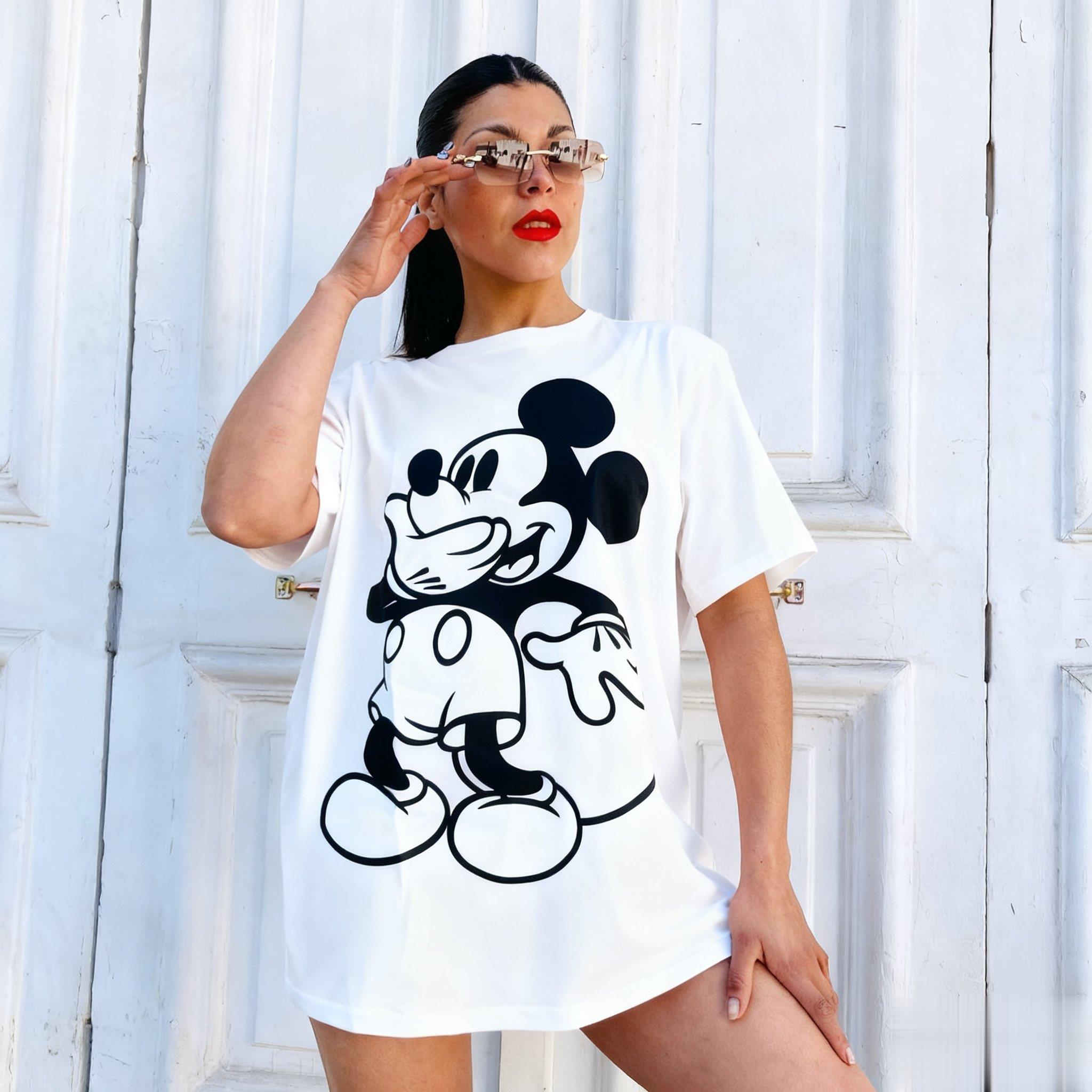 Damen T-Shirt Disney Mickey Maus Minnie Vintage Baumwolle Oberteile Lässig Kurzarm Niedlich Cartoon Druck Straßenmode Sommer Neu cm
