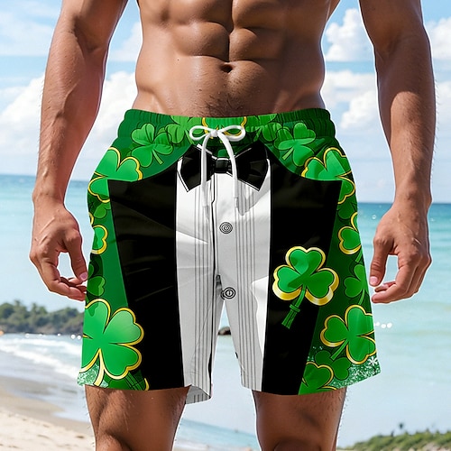Costumi da bagno a quattro foglie di clover shamrock con design a colletto e giacca per uomo giorno di San Patrizio vita media moda casual festa con tasche laterali foderati in rete cordoncino