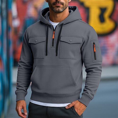 Per uomo Felpa con cappuccio Felpa con cappuccio e zip corta Felpa con cappuccio in pile Felpa con cappuccio tattica Nero Verde militare Blu marino Cachi Grigio chiaro Con Cappuccio Semplice Cerniera