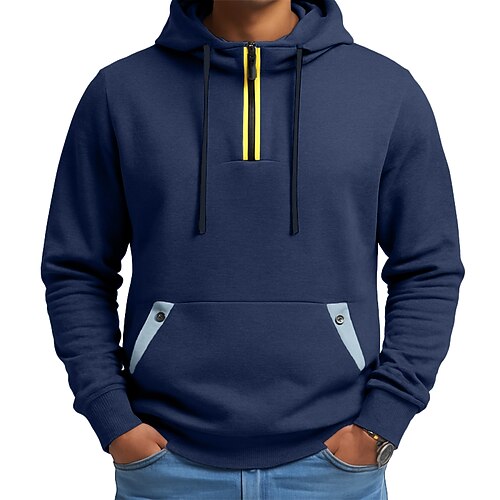 Per uomo Felpa Di pile Felpa con cerniera a un quarto Nero Verde militare Blu marino Cachi mezza cerniera Liscio Tasche Sportivo Giornaliero Per eventi Streetwear Fantastico Informale Primavera