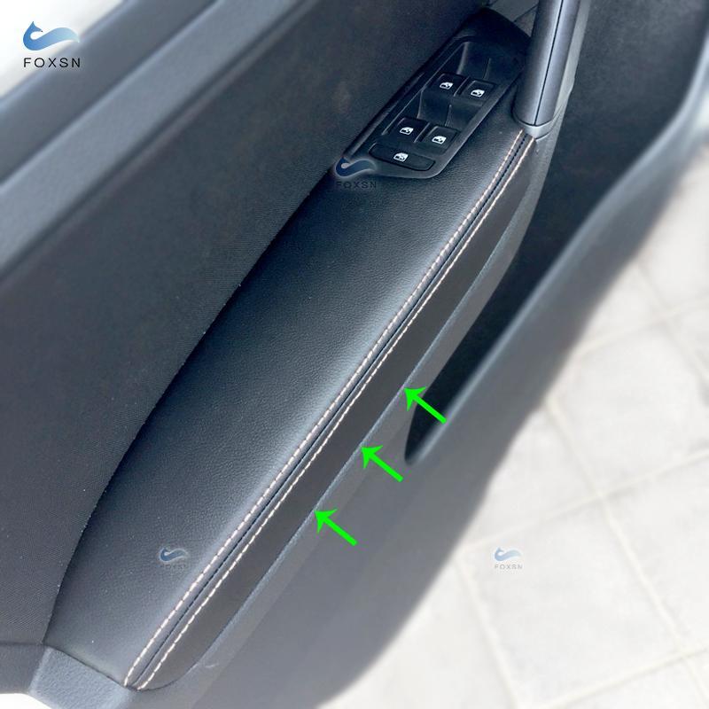 LHD/RHD For VW Golf 7 2014 2015 2016 2017 2018 4pcs Black with white line Car Door Armrest Panel Microfiber Leather Cover Trim