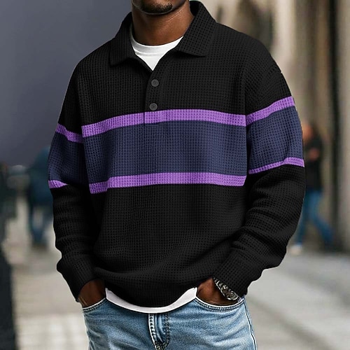 Per uomo Strisce orizzontali Magliette Polo a Nido d'Ape Polo da rugby Testurizzato Manica Lunga Magliette polo Bavero Abbigliamento Sportivo Casual Scuola Athleisure Abbigliamento quotidiano Stampa
