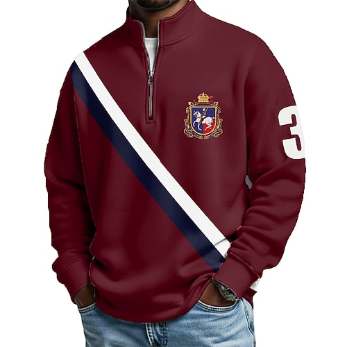 Per uomo Polo con zip Maglia da golf Manica Lunga Magliette polo Camicie con Colletto Casual Divertente Abbigliamento da vacanza Abiti da festa Stampa 3D Polo con cerniera a un quarto Autunno