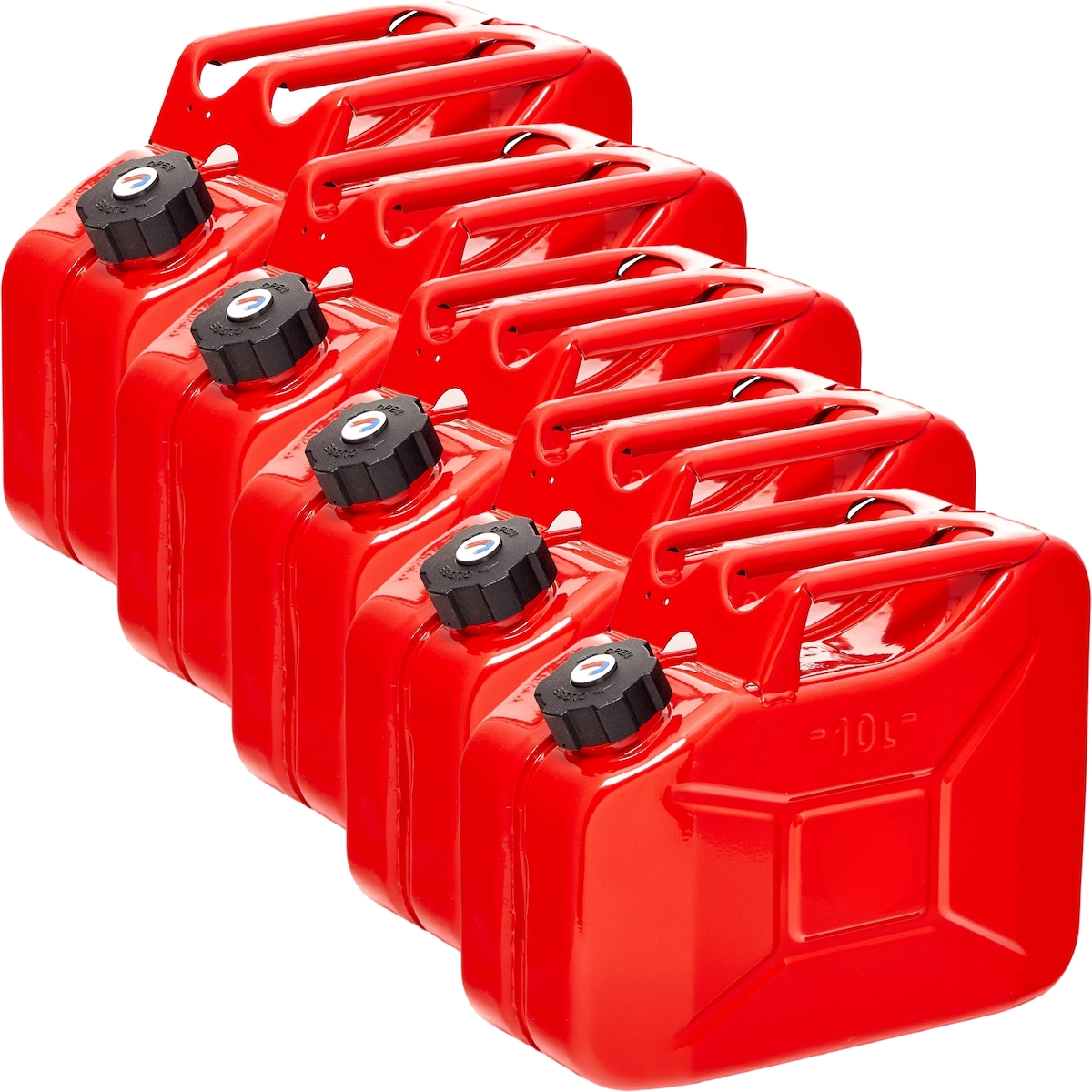 BW® Kraftstoffkanister Metall Benzinkanister 5x 10 Liter mit Schraubverschluss - Rot - RAL 3000 - TÜV-geprüft und UN-Zulassung - Made in Europe