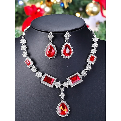 Set di collana e orecchini con pietre preziose rosse da donna, eleganti gioielli in cristallo per feste di Natale, regali per le feste occasioni formali
