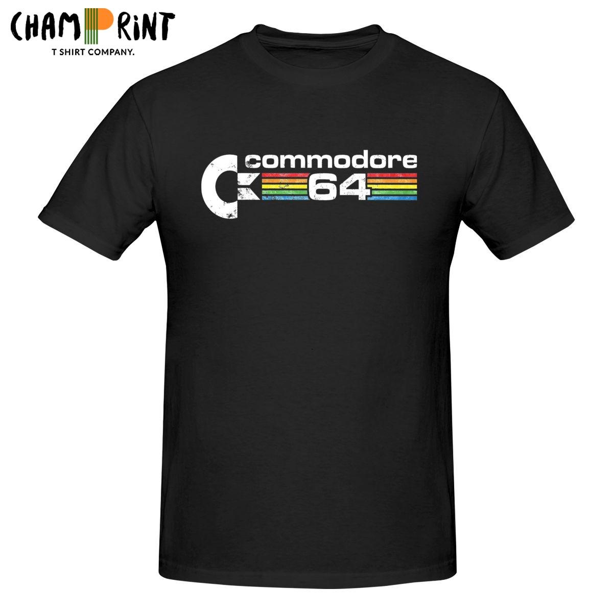 Commodore 64 Retro Logo T-Shirts for Men Casual Pure Cotton Tee Shirt Crew Neck Short Sleeve T Shirts 6XL Tops cm