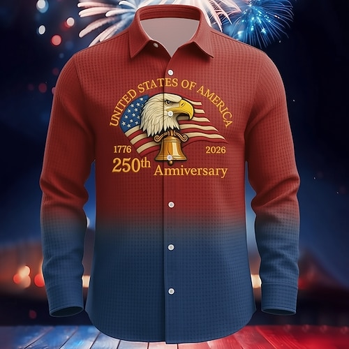 Per uomo Aquila Bandiera degli Stati Uniti 250° anniversario degli Stati Uniti Camicia Camicia a nido d'ape Camicia casual Manica Lunga Vintage Retrò Abbigliamento Quotidiano Ferie Estate Primavera