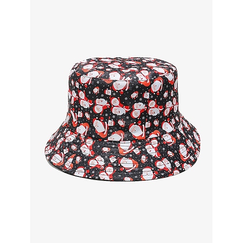 cappello da pescatore natalizio reversibile - design di Babbo Natale e renne, tema festivo a quadri rossi, cappello unisex per feste invernali e di fine anno