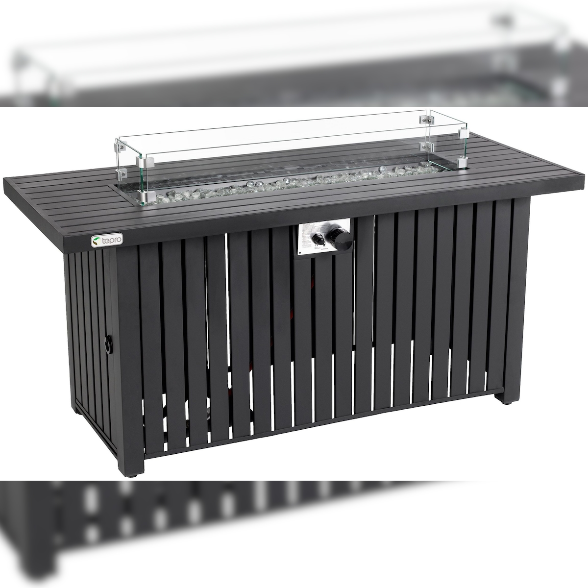 Tepro Feuertisch Topeka XL, Gasbetrieben, 137 x 56 x 63 (B x L x H) cm, mit Glasumrandung, anthrazit