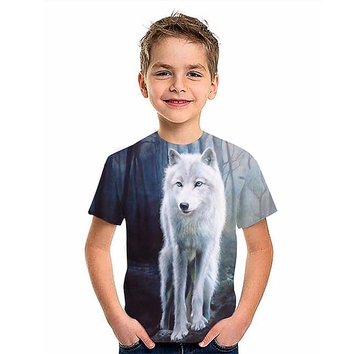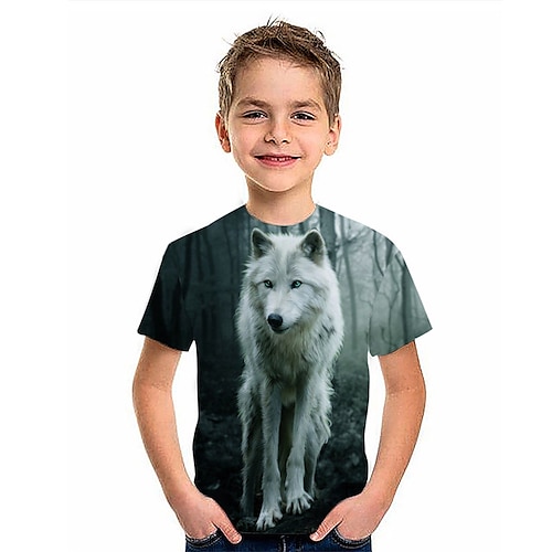 Da ragazzo 3D Animali Lupo maglietta Manica corta Stampa 3D Estate Primavera Attivo Sportivo Di tendenza Poliestere Bambino 3-12 anni Esterno Giornaliero Standard