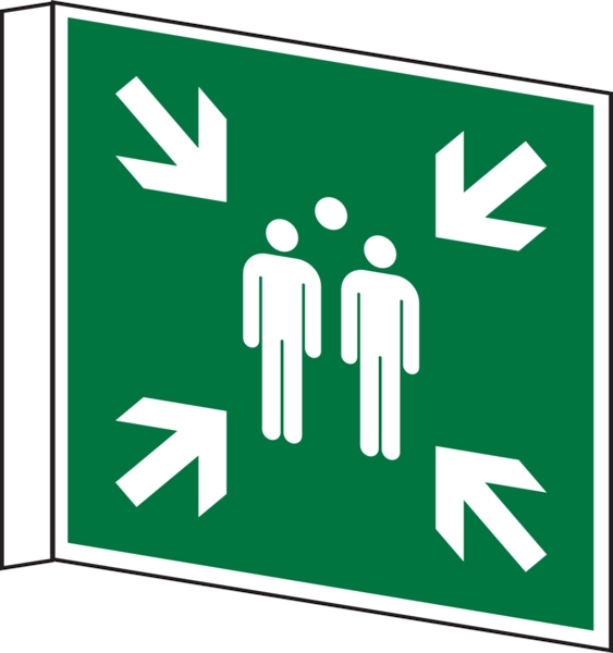 Rettungszeichen, Fahnen-/Nasenschild Sammelstelle E007 - ASR A1.3 (DIN EN ISO 7010) - 300x300x0.45 mm Aluminium glatt, nachleuchtend