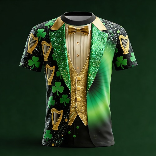 Maglietta da festa per uomo in costume per il giorno di San Patrizio, festa irlandese, divertente, con trifoglio, arpa, smoking, grafica, manica corta, stampa, abbigliamento, abbigliamento, s m l xl