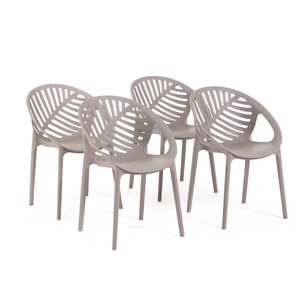 RATTATAN Set mit 4 stapelbaren Stühlen aus Polypropylen mit Glasfaser, für Garten, Bar und Restaurant, robuste und leichte Struktur – Vivian–Taupe