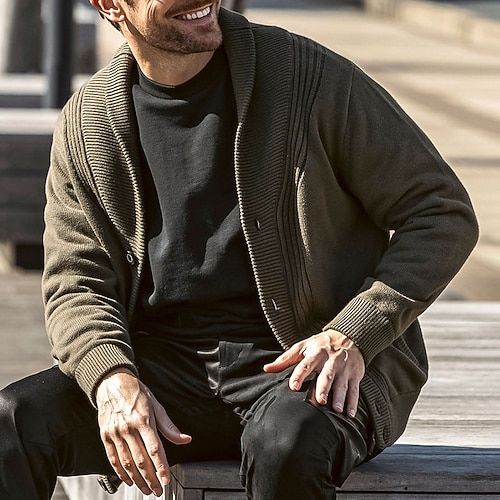 Per uomo Felpa Cardigan A Coste Maglia Top Regolari Lavorato a maglia Tinta unica Collo a scialle Vacanza Moda Casuale Abbigliamento quotidiano Abbigliamento Primavera Autunno Nero Verde militare M