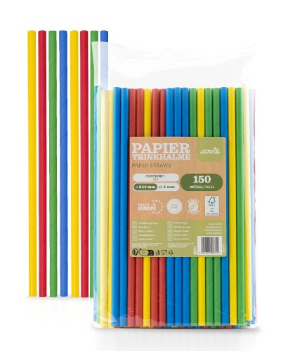 Jumbo Trinkhalme in gelb, rot, grün, blau - gemixt aus Papier, Ø 8 mm / 25 cm, 3300 Stück - Mank