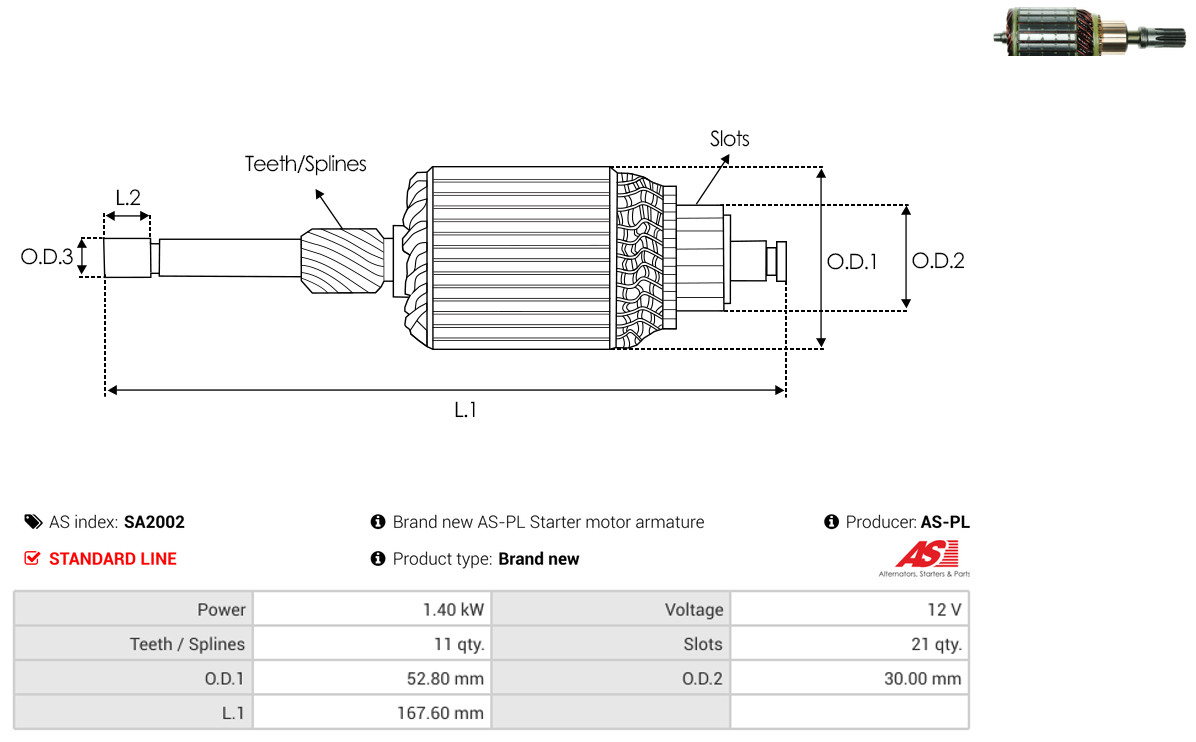 AS-PL Anker, Starter SA2002 Universal 12V 52,80mm für NISSAN 23310-45300 23310-N5900