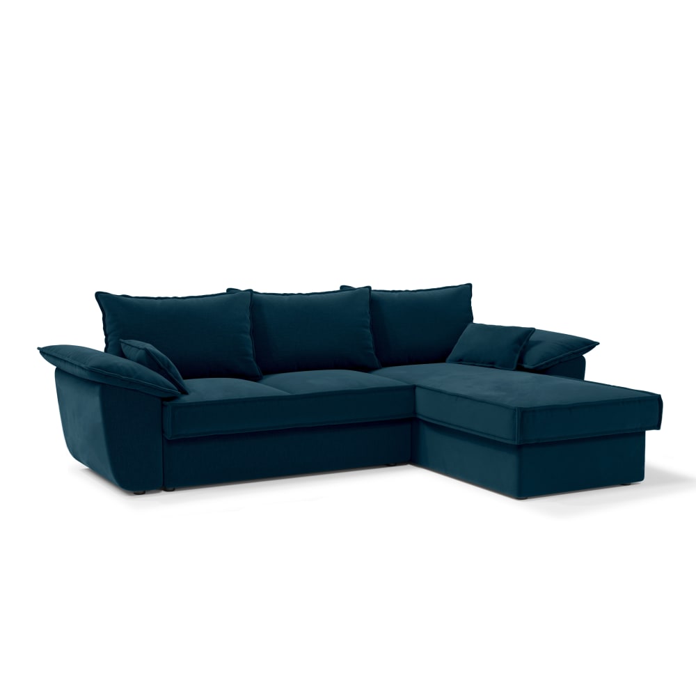 Divano angolare destro letto contenitore velluto blu pavone 257cm