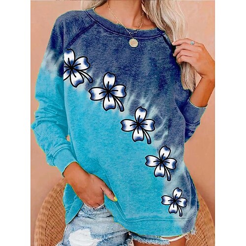 Felpa da donna per il giorno di San Patrizio Graphic Floreale Moda Casual a maniche lunghe Collo tondo Tops normali Street Dailywear Stampa Blu Viola Verde Primavera Autunno Inverno