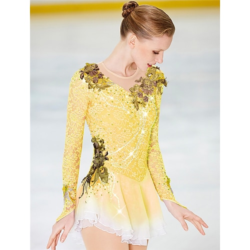 Vestito da pattinaggio artistico Per donna Da ragazza Pattinaggio sul ghiaccio Vestiti Bianco Giallo Scollatura posteriore Collage Elastene Elevata elasticità Addestramento Da allenamento