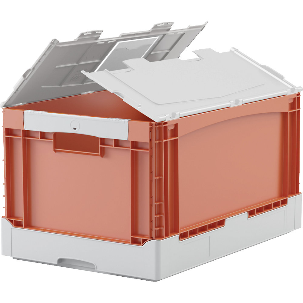 BITO Caixa rebatível EQ, com pegas telescópicas, fundo liso e tampa, CxLxA 600 x 400 x 332 mm, laranja