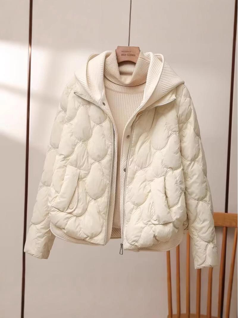 Damen Strick-Daunen-Baumwollmantel im europäischen Stil mit Kapuze - Kurz, locker, verdickt, Winter-Oberbekleidung cm rot