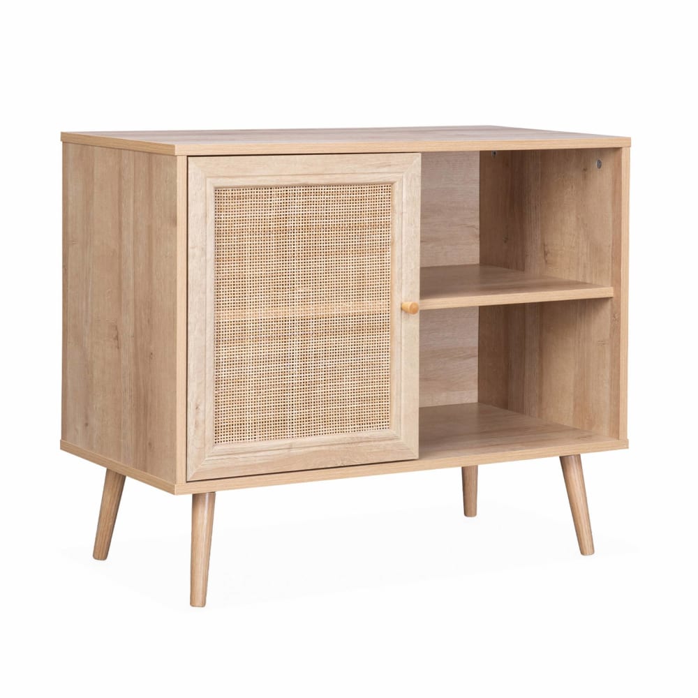 Credenza in cannage, 1 anta, 80cm, marrone naturale