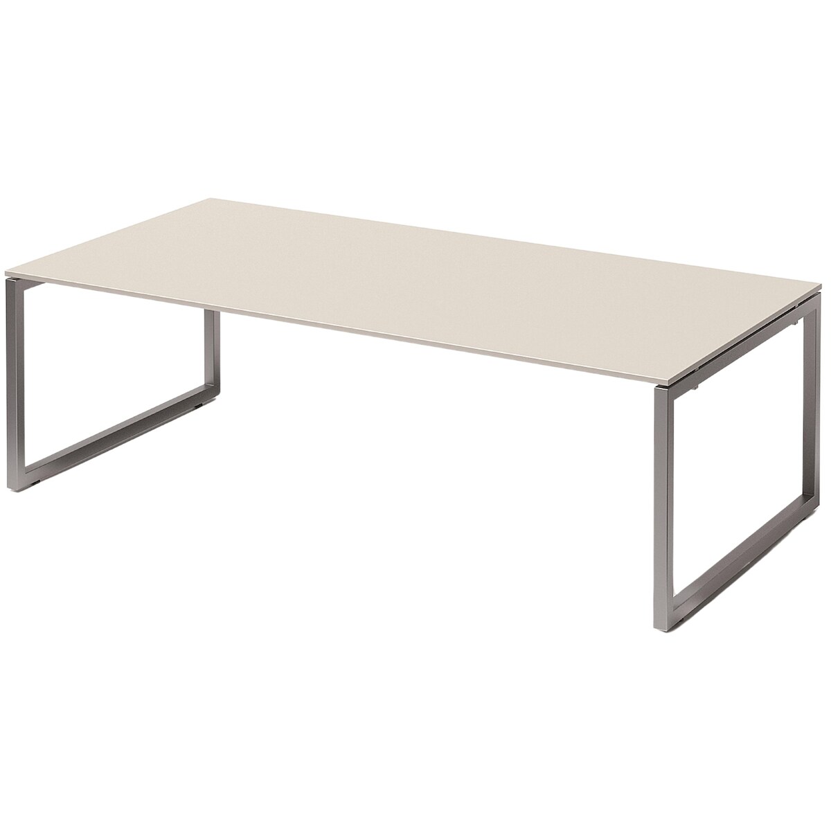Bisley Cito Konferenztisch 240x120 cm, Tischplatte in Grauweiß, O-Gestell in Silber - Besprechungstisch & Meetingtisch, großer Chef Schreibtisch