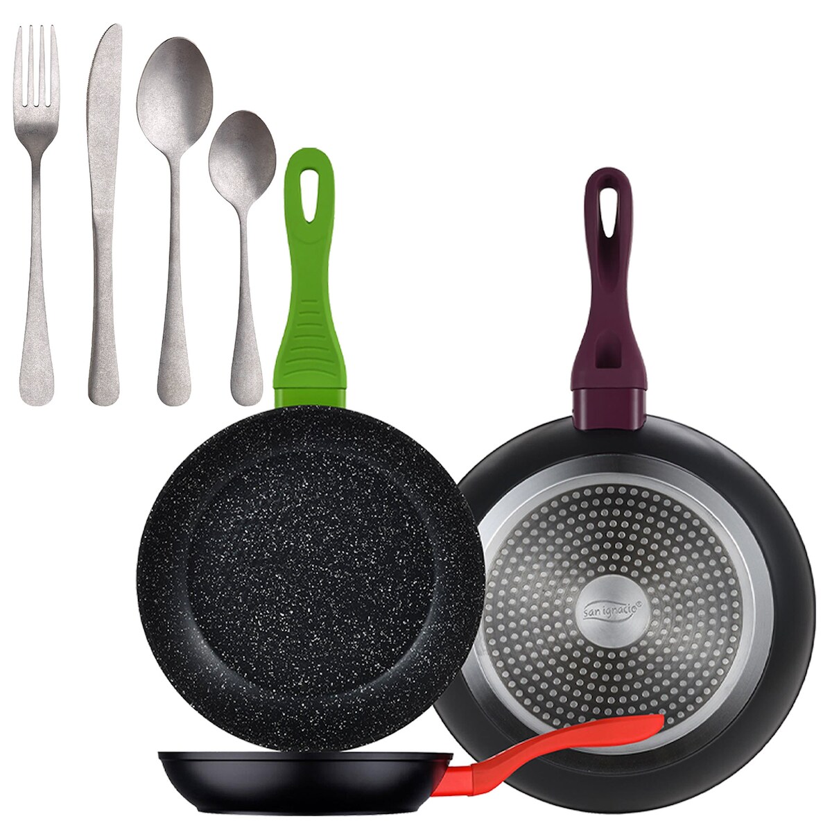 BERGNER - Set aus 3 Jolie-Pfannen Ø20/Ø24/Ø28 cm in Schwarz 16-teiliges Besteckset aus Edelstahl